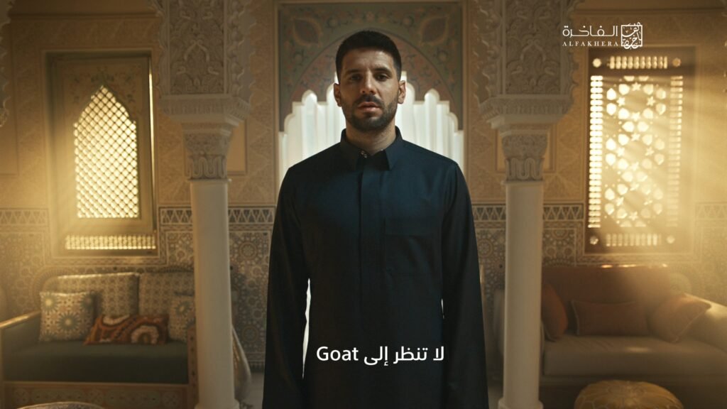 اختُتمت اللمسة الإبداعية بمشهدٍ رمزيٍ طريف — الماعز (Goat) — ليعكس بذكاء لقب “الأسطورة” في عالم كرة القدم، بطرحٍ بصري مختلف يجمع بين الهيبة وخفة الظل.